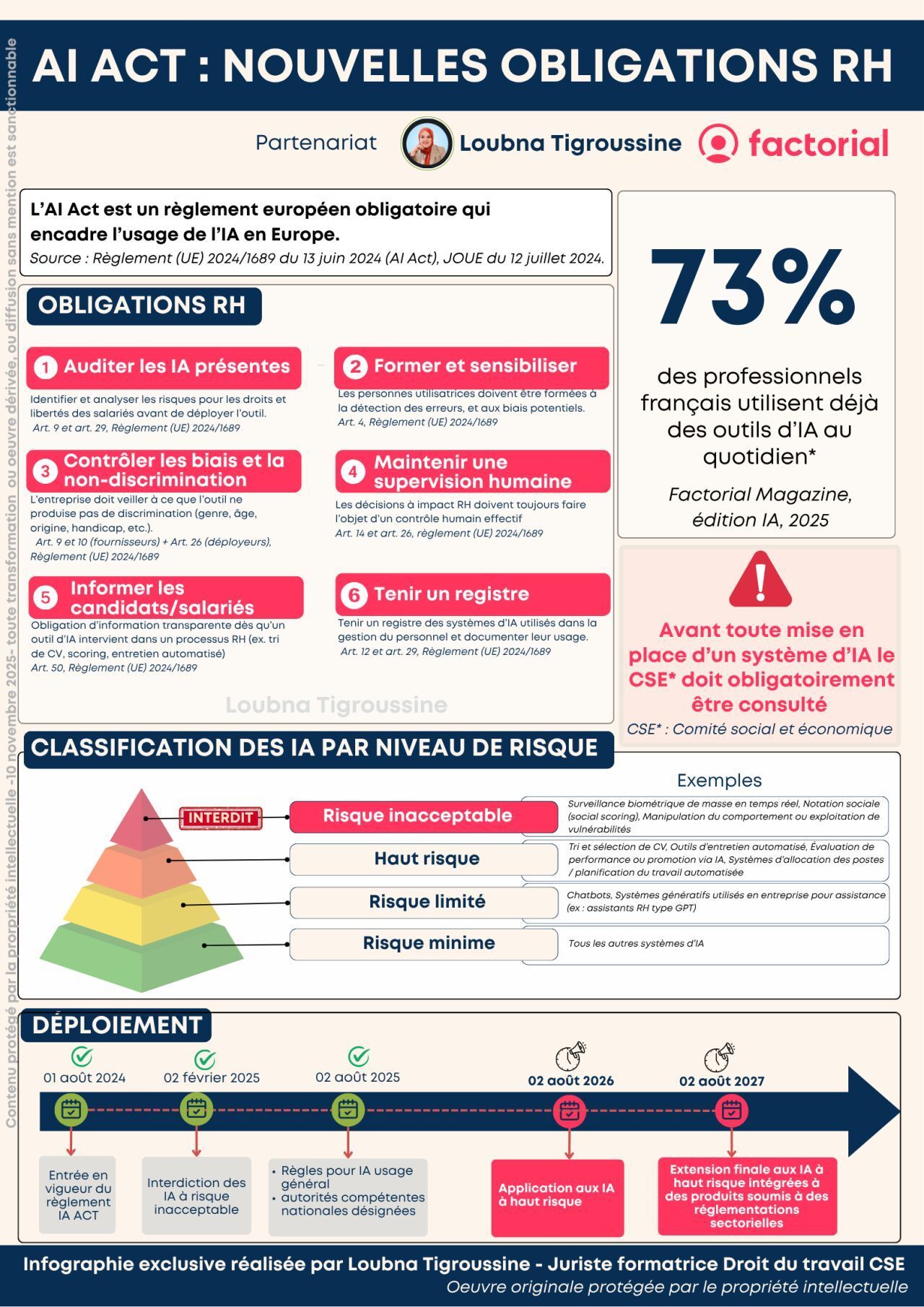 Je m’étais plus intéressée à l’IA Act côté business - et au fait que Bruxelles commence à avoir des sueurs froides sur le sujet - au point d’imaginer revenir en arrière 🇫🇷, comme sur tout un tas de lois genre la privacy. Le côté RH est tout aussi complexe à naviguer 🇫🇷 (merci Alexis Rollin pour la découverte).