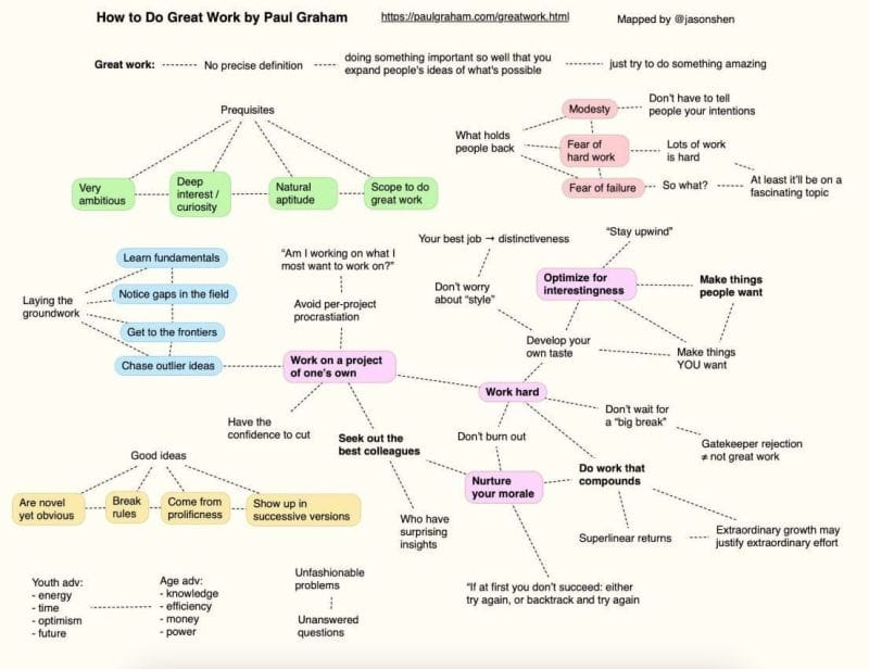 Au delà des prédictions et tendances, le début d’année est aussi souvent synonyme de listes de conseils soi-disant glanés au cours de l’année écoulée. Mais pas ce post, qui reprend un essai de Paul Graham de 2023 intitulé “How to do great work”.